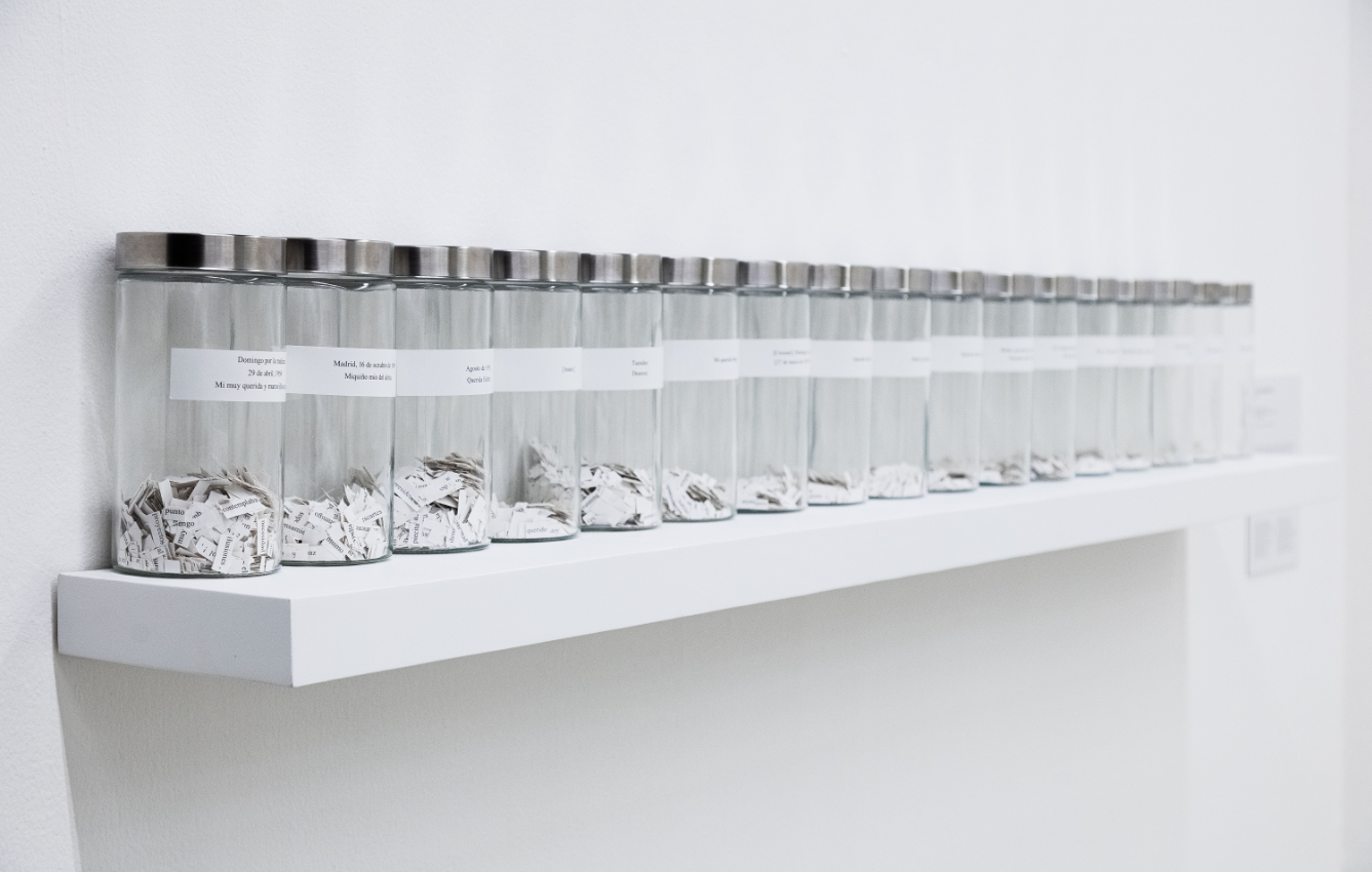 El trabajo de Dora García, una de las artistas españolas más relevantes de la actualidad, reflexiona sobre las posibilidades políticas del cuerpo a través del lenguaje y la memoria. Anaïs Florin y Julián Barón, junto a Manuel Vargas, nos llevan a Valencia —su ciudad natal— para mostrar cómo los libros son testigos de lo que persiste. Marla Jacarilla adopta un enfoque más romántico hacia la literatura y crea un dispositivo para conectarse con los archivos de los grandes escritores de la historia. Anna Dot emplea sus estudios en traducción y lenguas para explorar cómo se construye y deconstruye el lenguaje mediante juegos basados en su investigación performativa. Ignasi Aballí, al igual que Dora García, fue representante de España en la Bienal de Venecia y concibe los libros como historia e imagen, creando un mural conceptual donde las páginas se transforman en espacios temporales. Además, en sus famosos “Listados”, Aballí recorta palabras de periódicos para formar composiciones de sentido visual que, con un toque de humor, se convierten en un poema de lo cotidiano.